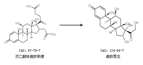 中文別名 氟羥潑尼松龍;曲安奈德;9a-氟-11b,16a,17a,21-四羥基-1,4-孕烯-3,20-二酮;9α-Fluoro-11β,16α,17,21-tetrahydroxy-1,4-pregnadiene-3,20-dione;