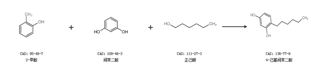 2.通過2-甲酚、間苯二酚和正己醇合成4-己基間苯二酚