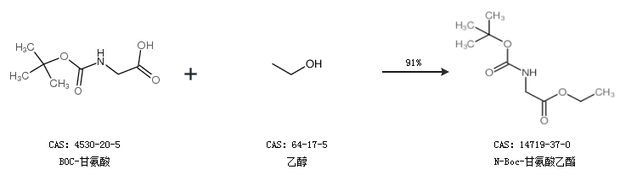 2.通過(guò)BOC-甘氨酸和乙醇合成N-Boc-甘氨酸乙酯,收率約91%;