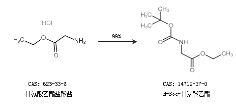 1.通過(guò)甘氨酸乙酯鹽酸鹽合成N-Boc-甘氨酸乙酯,收率約99%;