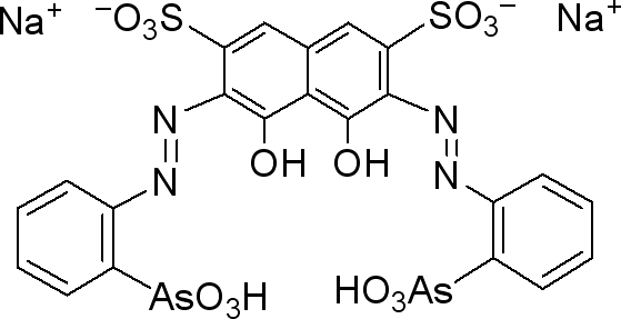 英文名稱 (3E)-3-[(2-arsonophenyl)hydrazinylidene]-5-hydroxy-4-oxonaphthalene-2,7-disulfonic acid