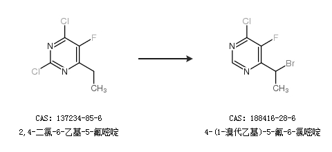 4-(1-溴代乙基)-5-氟-6-氯嘧啶,188416-28-6,結(jié)構(gòu)式