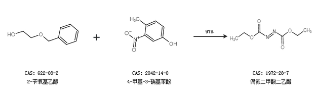 2.通過2-芐氧基乙醇和4-甲基-3-硝基苯酚合成偶氮二甲酸二乙酯,收率約97%;