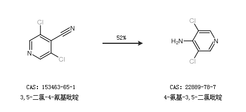 2.通過3,5-二氯-4-氰基吡啶合成4-氨基-3,5-二氯吡啶,收率約52%;