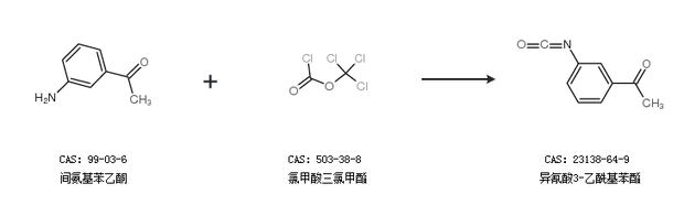 1.通過間氨基苯乙酮和氯甲酸三氯甲酯合成異氰酸3-乙酰基苯酯