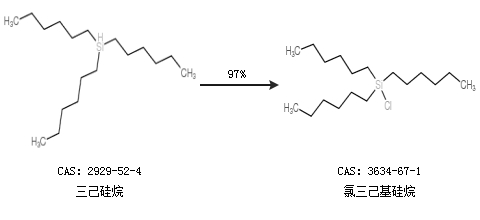 1.通過三己硅烷合成氯三己基硅烷,收率約97%;