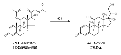 2.通過雙醋酸脫氫皮質(zhì)醇合成潑尼松龍,收率約90%;