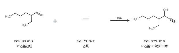 1.通過2-乙基己醛和乙炔合成4-乙基-1-辛炔-3-醇,收率約99%;