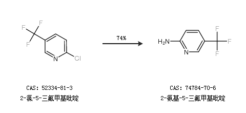 2.通過2-氯-5-三氟甲基吡啶合成2-氨基-5-三氟甲基吡啶,收率約74%;
