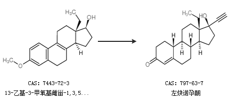 中文別名 左旋甲炔諾酮;(-)-炔諾孕酮;(-)-炔諾孕酮;D(–)-17α-乙炔基-17β-羥基-18-甲基雌甾-4-烯-3-酮;D-(-)-甲基炔諾酮;D-(-)-炔諾孕酮;13β-Ethyl-17α-ethynyl-17β-hydroxygon-4-en-3-one;D(-)-炔諾孕酮;