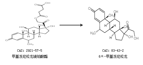 2.通過甲基潑尼松龍琥珀酸酯合成6α-甲基潑尼松龍