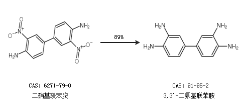 1.通過(guò)二硝基聯(lián)苯胺合成3,3''-二氨基聯(lián)苯胺,收率約89%;
