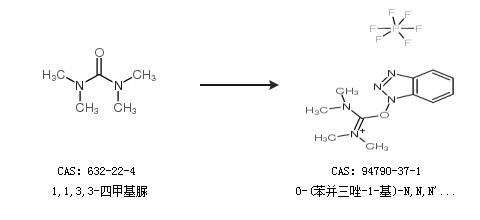 1.通過1,1,3,3-四甲基脲合成O-(苯并三唑-1-基)-N,N,N'',N''-四甲基脲六氟磷酸酯