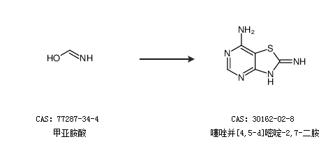 2.通過甲亞胺酸合成噻唑并[4,5-d]嘧啶-2,7-二胺
