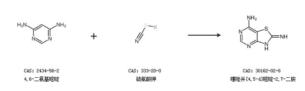 1.通過4,6-二氨基嘧啶和硫氰酸鉀合成噻唑并[4,5-d]嘧啶-2,7-二胺