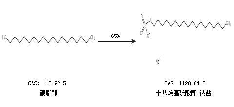 1.通過硬脂醇合成十八烷基硫酸酯 鈉鹽,收率約65%;