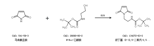 1.通過馬來酰亞胺和N-Boc-乙醇胺合成叔丁基 (2-(2,5-二氧代-2,5-二氫-1H-吡咯-1-基)乙基)氨基甲酸酯,收率約81%;