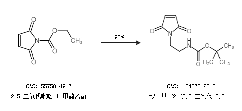 2.通過2,5-二氧代吡咯-1-甲酸乙酯合成叔丁基 (2-(2,5-二氧代-2,5-二氫-1H-吡咯-1-基)乙基)氨基甲酸酯,收率約92%;