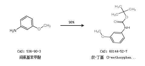 1.通過間氨基苯甲醚合成叔-丁基 (3-methoxyphenyl)氨基甲酸酯,收率約98%;