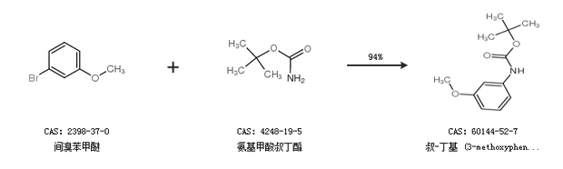 2.通過間溴苯甲醚和氨基甲酸叔丁酯合成叔-丁基 (3-methoxyphenyl)氨基甲酸酯,收率約94%;