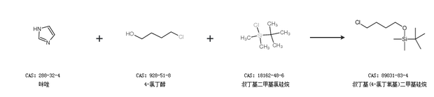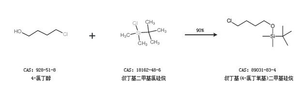 1.通過(guò)4-氯丁醇和叔丁基二甲基氯硅烷合成叔丁基(4-氯丁氧基)二甲基硅烷,收率約90%;
