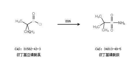 2.通過叔丁基亞磺酰氯合成叔丁基磺酰胺,收率約89%;