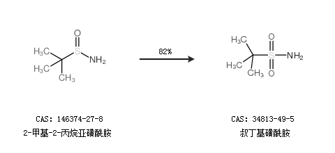 1.通過2-甲基-2-丙烷亞磺酰胺合成叔丁基磺酰胺,收率約82%;
