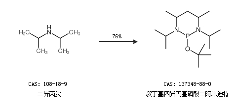 1.通過二異丙胺合成叔丁基四異丙基磷酸二阿米迪特,收率約76%;