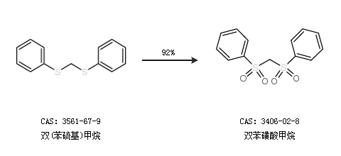 1.通過雙(苯硫基)甲烷合成雙苯磺酸甲烷,收率約92%;