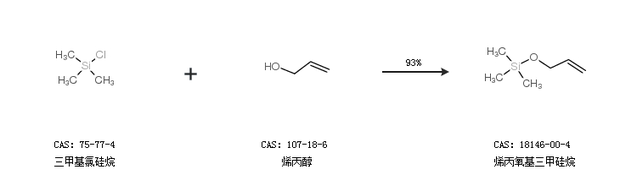 1.通過三甲基氯硅烷和烯丙醇合成烯丙氧基三甲硅烷,收率約93%;