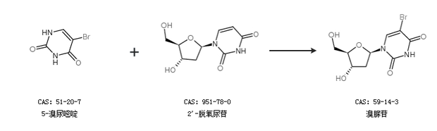 1.通過2''-脫氧尿苷合成溴脲苷,收率約95%;