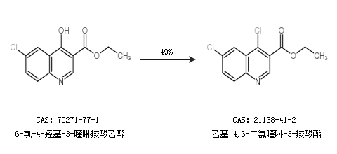1.通過6-氯-4-羥基-3-喹啉羧酸乙酯合成乙基 4,6-二氯喹啉-3-羧酸酯,收率約49%;