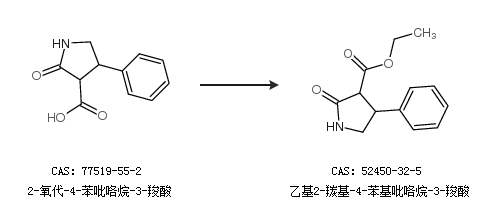 英文別名 2-Oxo-4-phenyl-pyrrolidin-3-carbonsaeure-aethylester;2-oxo-4-phenylpyrrolidine-3-carboxylic acid ethyl ester;2-oxo-4-phenyl-3-ethoxycarbonylpyrrolidine;4-phenyl-3-carbethoxy-2-pyrrolidone;Ethyl 2-oxo-4-phenyl-3-pyrrolidinecarboxylate;