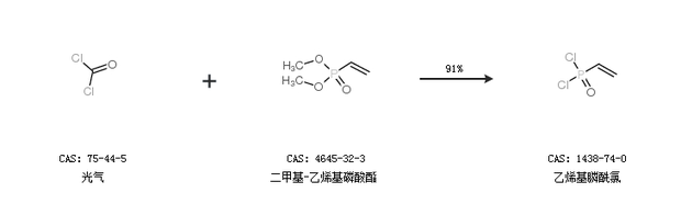 1.通過光氣和二甲基-乙烯基磷酸酯合成乙烯基膦酰氯,收率約91%;