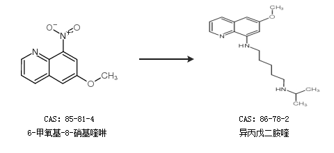 2.通過6-甲氧基-8-硝基喹啉合成異丙戊二胺喹