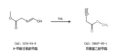 2.通過N-甲酰甘氨酸甲酯合成異腈基乙酸甲酯,收率約75%;