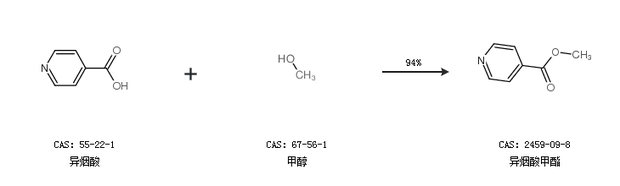 2.通過異煙酸和甲醇合成異煙酸甲酯,收率約94%;