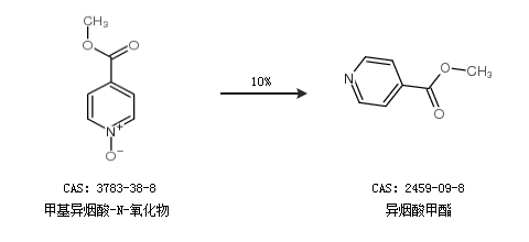 1.通過甲基異煙酸-N-氧化物合成異煙酸甲酯,收率約10%;