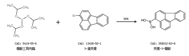 2.通過硼酸三異丙酯和3-溴熒蒽合成熒蒽-3-硼酸,收率約58%;