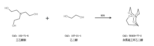 1.通過三乙醇胺和乙二醇合成雜氮硅三環(huán)乙二醇,收率約90%;