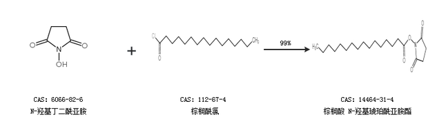 1.通過N-羥基丁二酰亞胺和棕櫚酰氯合成棕櫚酸 N-羥基琥珀酰亞胺酯,收率約99%;