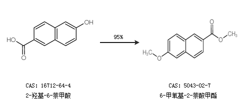 2.通過(guò)2-羥基-6-萘甲酸合成6-甲氧基-2-萘酸甲酯,收率約95%;