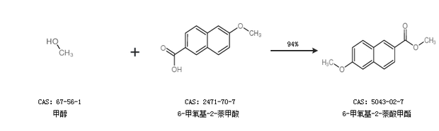 1.通過(guò)甲醇和6-甲氧基-2-萘甲酸合成6-甲氧基-2-萘酸甲酯,收率約94%;