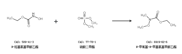 1.通過N-羥基氨基甲酸乙酯和硫酸二甲酯合成N-甲氧基-N-甲基氨基甲酸乙酯