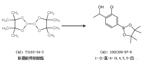 1.通過聯(lián)硼酸頻那醇酯合成1-(2-氯-4-(4,4,5,5-四甲基-1,3,2-二噁硼烷-2-基)苯基)乙醇