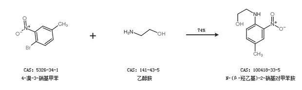 2.通過4-溴-3-硝基甲苯和乙醇胺合成N-(β-羥乙基)-2-硝基對(duì)甲苯胺,收率約74%;