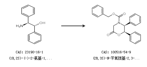 1.通過(guò)(1R,2S)-(-)-2-氨基-1,2-二苯基乙醇合成(2R,3S)-N-芐氧羰基-2,3-二苯基嗎啉-6-酮