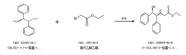 1.通過(guò)(1R,2S)-(-)-2-氨基-1,2-二苯基乙醇和溴代乙酸乙酯合成2-((1S,2R)-2-羥基-1,2-二苯基乙基氨基)乙酸乙酯,收率約97%;