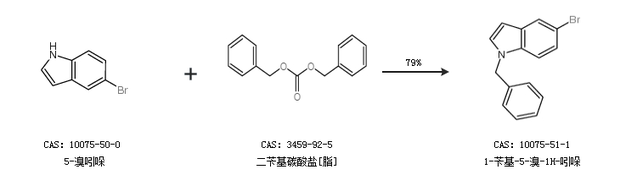 1.通過5-溴吲哚和二芐基碳酸鹽[脂]合成1-芐基-5-溴-1H-吲哚,收率約79%;