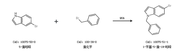2.通過5-溴吲哚和溴化芐合成1-芐基-5-溴-1H-吲哚,收率約95%;